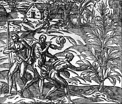 Indigenous peoples have lived in São Paulo since approximately 12000 BC.[2] Around 1000, its coast was invaded by Tupi speakers from the Amazon rainforest.[3] When Europeans arrived in the 16th century, the indigenous people on the coast were mostly Tupinambás, Tupiniquins and Carijós, with Macro-Jê speakers in the interior.[3][4]