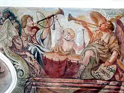 The horse-mounted timpani of the Ottoman Empire was sure to be one of the sources of inspiration for the European adoption of timpani into their cavalry. Having timpani in the cavalry was rare and the drums were only awarded to the most elite of groups. The drums were paired with trumpeters and announced the arrival of the armies.[4] Both the trumpeters and the timpanists were highly regarded and were often placed close to a commander when in battle. This relationship between the trumpet and timpani continued for many centuries. As empires in Europe gave way to royal courts, the timpani and trumpet pairing continued to be used, but they were now used as more of an image-builder for the nobility. It was common for emperors, dukes, lords and others of high rank to travel with a timpanist and trumpeter to emphasize the importance of their social rank.[5] Those who possessed timpani were an exclusive group. This meant that timpanists themselves were only allowed to be employed by nobility and were not to interact with other instrumentalists, who were considered to be household employees of an inferior rank. As a result, guilds were formed by timpanists and trumpeters and members were treated as an elite group.[6]