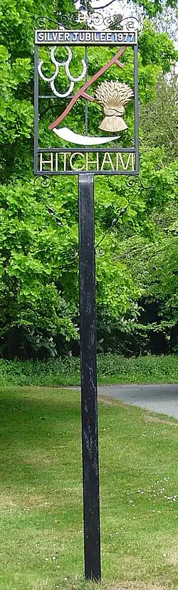 Hitcham is a village and civil parish in Suffolk, England. Located on the B1115 road, between Hadleigh and Stowmarket, it is part of Babergh district. The parish contains the hamlets of Bird Street, Cook's Green and Cross Green. The population of the parish of Wattisham is also included.