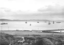 With the outbreak of World War II, the Department of Defence acquired land near South Arm close to the mouth of the Derwent River on the eastern shore, from Courtland Calvert and his sister in September 1939.[1] At first, the land was used purely as a training ground, with mock battles that were disruptive to locals being fought day and night. But as war preparations evolved, the Commonwealth decided that the port of Hobart would require some degree of defence to protect the state's vital zinc industry that was crucial to the war effort. Major Mark Pritchard was the first commanding officer of the new defences that became known as Fort Direction.[1] By the end of 1939, construction of two fortified six-inch (152 mm) Mk VII gun emplacements, and a small four room weatherboard control building had been completed. Soon there was also a flagpole and set of naval signals.[1][19]