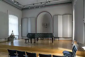 Also at the fringe of the campus, opera students may use the historic Sommertheater, to gain concert experience and the taste of a fully staged opera performance. The Erich Thienhaus Institute is built directly onto the large concert hall. The concert hall is equipped with a unique spatial audio rendering technique (Wave Field Synthesis). About 180 artists and teachers as well as the many national and international partners work at the Hochschule. Students from Detmold are very often found among prize-winners in competitions. They are represented not only in the contemporary classical music scene in all important opera houses and orchestras, but also work worldwide in prominent positions as teachers in universities, academies and music schools.