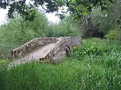 The Hockenhull Platts are three bridges southwest of the village of Tarvin, Cheshire, England. They are also known as the "Packhorse Bridges" or (erroneously) the "Roman Bridges",[3] and are recorded in the National Heritage List for England as designated Grade II listed buildings.[4][5] The bridges are situated where Platts Lane crosses the River Gowy. An area of 5 hectares (12 acres) west of the Gowy, including the westernmost bridge, forms Hockenhull Platts Nature Reserve, managed by the Cheshire Wildlife Trust.[1]