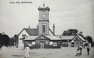 Hoddesdon Town Hall, also known as Hoddesdon Clock House, was a municipal building in the High Street in Hoddesdon, Hertfordshire, England. Except for the clock tower, which survives, the building was demolished in 1967. The clock tower remains a Grade II listed building.[1]