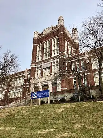 The building was designed by the architectural firm Samuel Hannaford and Sons. It was constructed in 1922. Around 2012, Cincinnati Public Schools planned to tear it down, but instead sold it at auction to a single individual, who donated it to the Christ Temple Baptist Church. In 2023, the church hoped to sell the building to a real estate developer who wanted to demolish the building and construct apartments on the site. The Cincinnati Preservation Association responded with an application to list the building as a Cincinnati Local Historic Landmark.[1] The application was approved by the Historic Conservation Board in May 2023, but was subsequently denied by the Cincinnati City Council.[2]