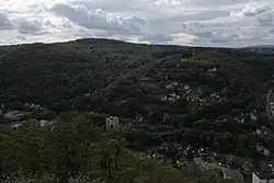 - The Bergkapelle (Hill Chapel) looks down on Hofheim from the forest on Kapellenberg (Chapel Hill) in the northwest of the old town. It dates back to the 17th century when it was built to express relief and gratitude for having not been struck by Black Death.[44]