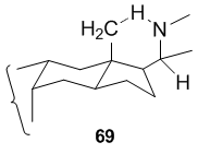 In case of 64 and 66, the five-membered nitrogen ring is formed by attack on the unactivated C-18 methyl group of the precursor (63 or 65, respectively) by a suitably placed nitrogen-centered radical at C-20. The ease of this reaction is due to the fact that in the rigid steroid framework the β-C-18 methyl group and the β-C-20 side chain carrying the nitrogen radical are suitably arranged in space in order to allow the 1,5-hydrogen abstraction to proceed via the six-membered transition state.