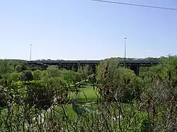 Hoggs Hollow Bridge, originally known as the Yonge Boulevard Viaduct, is a set of four separate highway bridges that span the West Branch of the Don River Valley in Toronto, Ontario, Canada, and carries 14 lanes of Highway 401. The four structures are the busiest multi-span bridge crossing in North America, surpassing the Brooklyn Bridge.