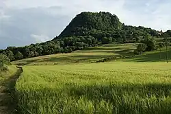 Hohentwiel (German pronunciation: [ˈhoːənˌtviːl] ⓘ) is a mountain of volcanic origin in the Hegau region of Baden-Württemberg in southern Germany. It is the Hausberg of the industrial city of Singen, located west of it and ca 10 km (6.2 mi) west of Zeller See (Lake Constance).[1][2] The ruins of the medieval Hohentwiel Castle rest on top of it.