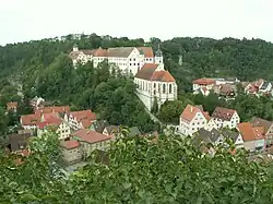 The castle church in Haigerloch, taken from the upper town. | |||||||||