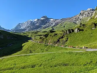 The Hohtürli (Swiss German, literally means High Little Door) is a high Alpine hiking pass of the Bernese Alps. The pass crosses the col between the peaks of Wildi Frau and Dündenhorn, at an elevation of 2,778 m (9,114 ft).[1]