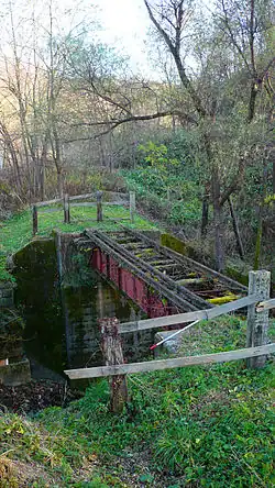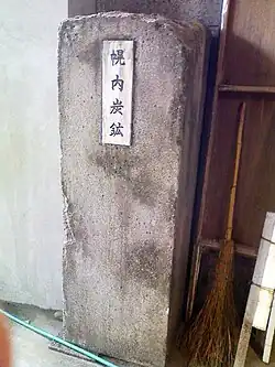 In 1868, carpenter Kimura Kichitarō (木村 吉太郎) discovered coal in Horonai, Mikasa (三 笠).[2] However, it took another 6 years before Chōjūrō Hayakawa a citizen of Sapporo, delivered the first coal to the colonization commission (開拓使, Kaitakushi).[3] The local government took action, and the mining engineers Benjamin Smith Lyman and Takeaki Enomoto welded an investigation. Their findings were satisfactory, and the Meiji government decided to build in Horonai the first coal mine of the Ishikari coal basin.[4] The construction of the mine was led by the American engineer L.C.E. Goujot and his disciple Edward Parry.[5] The first adit, the Daikōdō (大抗道, big adit) was opened in 1879. It was followed by the opening of the Takinosawa adit (瀧ノ沢抗) and Honsawa adit (本沢抗) in 1882, which meant the start of the coal production.[4]