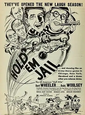 Hold 'Em Jail is a 1932 American pre-Code comedy film starring Wheeler and Woolsey as a couple of inept characters who are wrongfully convicted of firearm possession. They are sent to prison, where they somehow end up playing on the warden's football team.