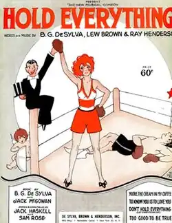 Hold Everything! is a musical comedy with lyrics by Lew Brown and B. G. de Sylva, music by Ray Henderson, and has an accompanying book by John McGowan and B. G. de Sylva. A musical about professional boxing, the work's central character is welterweight Sonny Jim Brooks.[1] The musical takes place at "Pop" O'Keefe's Training Camp on Long Island; at the Hotel Wood; and at Madison Square Garden, New York.