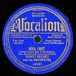 "Hold Tight, Hold Tight (Want Some Seafood Mama)", commonly known as "Hold Tight", is a 1938 Sidney Bechet song, composed by Bechet's guitarist Leonard Ware and two session singers with claimed contributions from Bechet himself. The song became known for what at the time were considered suggestive lyrics, and then for a series of lawsuits over songwriter royalties.[1][2]