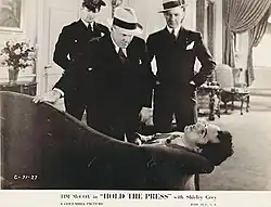 Hold the Press is a 1933 American pre-Code crime drama film, directed by Phil Rosen. It stars Tim McCoy, Shirley Grey, and Wheeler Oakman, and was released on October 25, 1933.