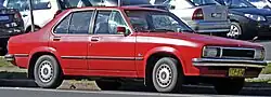 Holden's most popular car to date, the Commodore, was introduced in 1978 as the VB.[96] The new family car was loosely based on the Opel Rekord E body shell, but with the front from the Opel Senator grafted to accommodate the larger Holden six-cylinder and V8 engines. Initially, the Commodore maintained Holden's sales leadership in Australia.[97] However, some of the compromises resulting from the adoption of a design intended for another market hampered the car's acceptance. In particular, it was narrower than its predecessor and its Falcon rival, making it less comfortable for three rear-seat passengers.[98] With the abandonment of left-hand drive markets, Holden exported almost 100,000 Commodores to markets such as New Zealand, Thailand, Hong Kong, Malaysia, Indonesia, Malta and Singapore.[49]