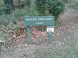 - Wildlife Sanctuary–a relatively level 2.785 acres (1.127 ha) set of six tracts, which was subdivided for development in the 1960s, but never improved. It is located in the Hybla Valley area and Hybla Valley Farm land tract along Delafield Place and Boswell Avenue, west of Elba Road. While it was acquired through a land trade with Fairfax County in 1976, it is a part of the HOD. The majority of the land is located within the Chesapeake Bay RPA since 2003.[40]