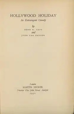 Hollywood Holiday is a comedy play by British writers John Van Druten and Benn Levy. The play is a satire on Hollywood script-writing, and sees a female playwright's script being transformed into half a dozen unrecognisable screenplays.