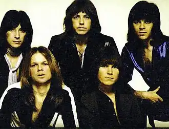 In November 1973, Fowley approached singer Scott Phares at Rodney Bingenheimer's English Disco about being the group's vocalist, having seen him perform a year prior at a swinger's ball with his previous band, the Boston-based group Adrian.[3][4] He also approached drummer Terry Rae, who at the time was working with San Francisco-based rock band Flamin' Groovies.[5] Rae had also worked with The Palace Guard, Strawberry Alarm Clock[3] and the psych rock act Jamme, whose sole LP was produced by John Phillips (The Mamas & the Papas).[6] Both musicians agreed to join the group.[4] Terry Rae recommended guitarist Ruben De Fuentes, who had played in a band with Rae previously. De Fuentes was initially hesitant to join due to his preference for hard rock, but Fowley convinced him to join.[7] They next added Gary Van Dyke on bass.[8] Mark Anthony was added last due to Fowley's wish to give the group more of a Beatles-like sound.[3]