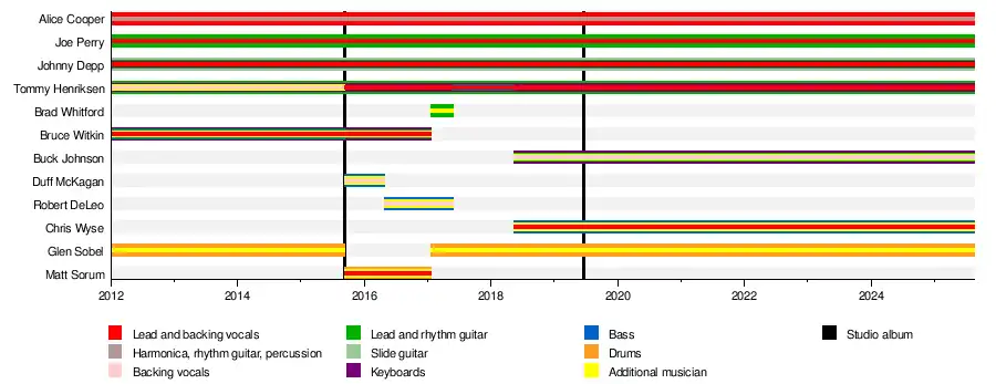 This is an approximate timeline of Hollywood Vampires members and their touring band.