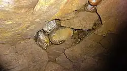 A cave (NS783114), locally known as the 'Snake's Cave' is located just off the course of the Holm Walks path running upstream near the Sarah's Trough pool. This has been associated with Covenanters hiding from the King's troops.[5]