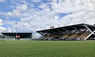 The construction of the stadium commenced in November 2019 and the artificial turf field was opened for trainings in December 2020.[3] However, the completion of the grandstand saw delays due to the rise of construction costs that were caused by the COVID-19 pandemic and the Russian invasion of Ukraine. In the spring of 2023, Welco started a crowdfunding campaign and gathered €60,000 to finish the construction.[4]