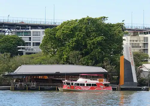 Holman Street ferry wharf is a heritage-listed ferry wharf located on the southern side of the Brisbane River in Kangaroo Point, City of Brisbane, Queensland, Australia. It is served by RiverCity Ferries' CityHopper and the Cross River service to Riverside wharf.[1][2][3] It was added to the Queensland Heritage Register in 2004.[4]