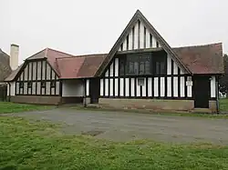 Holme Lacy Village Hall is a half-timbered building in the village centre, built in the 1920s. It was a gift to the village from Lord and Lady Lucas-Tooth of Holme Lacy House, in memory of their two sons who were killed in World War I and who are commemorated on a plaque inside the hall.[13] The hall is a registered charity, and is used for a range of activities including coffee mornings, line-dancing, and wedding receptions; it is also the home of Holme Lacy football club.[14][15][16]