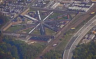 Holmesburg Prison, given the nickname "The Terrordome,"[1] was a prison operated by the city of Philadelphia, Pennsylvania and the Pennsylvania Department of Prisons (PDP) from 1896 to 1995. The facility is located at 8215 Torresdale Avenue in the Holmesburg section of Philadelphia. It was decommissioned in 1995 when it closed. As of today, the structure still stands and is occasionally used for prisoner overflow and work programs.[1]