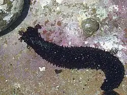 Holothuria leucospilota, commonly known as the black sea cucumber or black tarzan, is a species of marine invertebrate in the family Holothuriidae. It is placed in the subgenus Mertensiothuria making its full scientific name Holothuria (Mertensiothuria) leucospilota. It is the type species of the subgenus[2] and is found on the seabed in shallow water in the Indo-Pacific.
