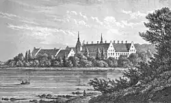 Holsteinborg Castle is a manor house located 12 kilometres (7.5 mi) southeast of Skælskør, Slagelse Municipality, Denmark. It was built in the first half of the 17th century by members of the Trolle family, who gave it the name Trolholm, but has been owned by the Holstein family since 1707. Hans Christian Andersen was a frequent visitor to the estate in the middle of the 19th century. The main building is situated close to the coast, overlooking Holsteinborg Nor, a shallow watered cove which is almost closed off from the Småland Sea and Great Belt by Glænø, Glænø Stenfed and Glænø Østerfed.[1]
