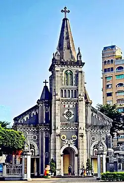 The Basilica Cathedral of Our Lady of the Holy Rosary (Chinese: 前金天主堂; pinyin: qiánjīn tiānzhǔ táng; Pe̍h-ōe-jī: cheng-kim thian-chu tong; officially called Chinese: 玫瑰聖母聖殿主教座堂) is the oldest Catholic church and Minor Basilica in the Republic of China. The shrine is dedicated to the Blessed Virgin Mary under the venerated title of “Our Lady of Holy Rosary”. It is located in Lingya District, Kaohsiung and is the seat of the Bishop of Kaohsiung.