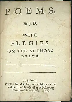 "Holy Sonnet IX" is a sonnet written by John Donne between 1608 and 1610.[1][2] The poem was first published two years after Donne’s death in Poems in 1633,[3] where it appeared as "Holy Sonnet V". In the 1635 edition of Poems, the order was changed and the sonnet became "Holy Sonnet IX".[4]