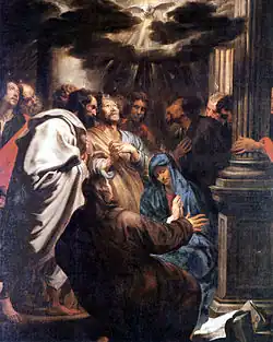 The Christian movement called Pentecostalism derives its name from the event of Pentecost, the coming of the Holy Spirit when Jesus' disciples were gathered in Jerusalem.[15] Pentecostals believe that when a believer is "baptized in the Holy Spirit", the gifts of the Spirit (also called the charismata) are activated in the recipient to edify the body of Christ, the church. Some of these gifts are listed in 1 Corinthians 12.