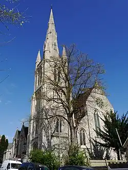 The building is Grade II* listed.[1] Its spire, which rises 230 feet, is of Corsham stone, a fine grained Bath Stone and is regarded as a landmark for the area.[2]