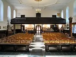 Holy Trinity is the only large 18th-century place of worship in Surrey and stands in a commanding position at the top of Guildford's High Street.[2] In the mid-19th century the interior of the church was altered extensively. In 1869 Woodyer replaced the double rows of windows with single rows.[8] The side galleries were removed in 1867. The Victorian emphasis on ritual and sacrament called for a larger chancel, and in 1886 the church was enlarged at the east end, creating the present choir, sanctuary, side chapel and organ chamber.[9]