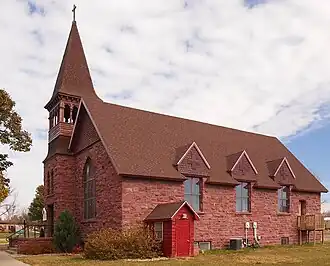 Its first rector, the Rev. C.S. Ware, and Bishop Mahlon Norris Gilbert set its cornerstone on August 19, 1891. The church was completed late that same year, costing $6,000.[2] It was built with Sioux Quartzite from a local quarry.[3]