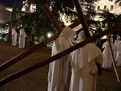 - A number of penitents dressed with the robe or habit of the brotherhood. A few of them carry flags to announce which brotherhood is making penance. Most brothers accompany the parade with candles or sticks with crosses. Other carry heavy crosses and chains. Some of them might walk barefoot.