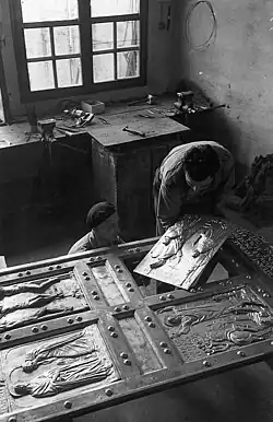After closing the Holy Year on Christmas day 1950, Pope Pius XII replaced the wooden doors installed by Pope Benedict XIV in 1748, which had begun to fall into disrepair, with the 16-panelled bronze doors, modelled by Vico Consorti and cast by Ferdinando Marinelli Artistic Foundry, that are seen today.