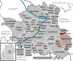 The community is located north of the Bundesautobahn 8, halfway between Ulm and Stuttgart; the next junction is Aichelberg.