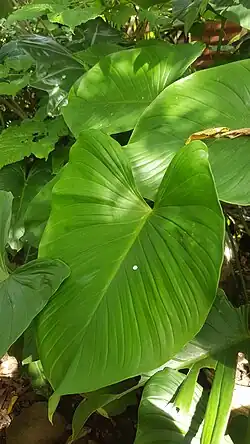 Homalomena philippinensis is a species of flowering plants in the family Araceae. It is native to the Philippines and Orchid Island in Taiwan.[1] The plant has large heart-shaped leaves that grow up to around 1 m (3.3 ft) tall from an underground corm. It grows at low elevations usually in forests and along bodies of water.[2][3] It is commonly known as payau or payaw, alupayi or alopayi, salet, or tahig, among other names.[2]