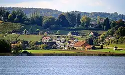 There are seven sites in Hombrechtikon that are listed as Swiss heritage sites of national significance. The houses in the town include; the Hof Oberhaus at Seestrasse 2&4, the Hürlimannhaus at Lützelsee 2&4, the Landstiz Rosenberg at Alte Landstrasse 1&3, the Menzihaus at Lützelsee 3 and the Eglihaus at Lutikon 1-3. The town's Reformed church is also on the list. The Neolithic and early Bronze Age settlement at Feldbach is the last site on the list. The entire hamlet of Lützelsee and the Feldbach area are part of the Inventory of Swiss Heritage Sites.[7] The prehistoric settlement Feldbach is part of the Prehistoric Pile dwellings around the Alps, a UNESCO World Heritage Site.[8]