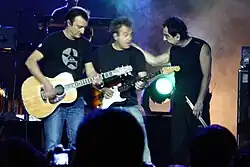 Hombres G ("G-Men") is a Spanish pop rock band, formed in Madrid in 1983. They are widely considered one of Spain's most prominent pop groups of the 1980s and early 1990s.[1] The band consists of lead vocalist and bassist David Summers, lead guitarist Rafael Gutierrez, rhythm guitarist and pianist Dani Mezquita, and drummer Javi Molina.
