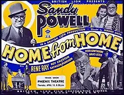 Home from Home is a 1939 British comedy drama film directed by Herbert Smith and starring Sandy Powell, Rene Ray and Peter Gawthorne.[1] It follows a man who struggles to cope with life after being released from prison.