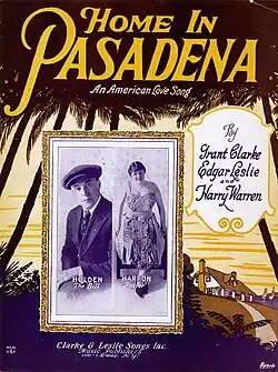 "Home in Pasadena" is a song with music by Harry Warren and lyrics by Grant Clarke and Edgar Leslie.[1][2] In the song, the singer, about to travel to Pasadena by Pullman Train, describes the attractions of his destination.