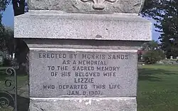 Jewish immigrants arrived in Helena as early as 1864. Most of the Jewish immigrants to Helena had come from Germany or Prussia in the wake of the Montana Gold Rush. Most of them practiced Reform Judaism and worked as merchants, providing goods and services to the miners. As of November 2005, there are 204 tombstones and over 240 recorded burials in the cemetery. There are no markers remaining from the 1860s. The oldest remaining marker is that of Hattie Jacobs who died in 1873. Most markers are made from local sandstone or granite, a few of imported marble. Markers are found both lying down and standing upright. As the Jewish population of Helena peaked in 1900 with 138 adults, burials in the cemetery are no longer as frequent as they once were.[2][3] When the cemetery first opened in 1867 it was well outside the city limits at that time. The first Jew known to have died in Helena was Emanuel Blum, who died on May 5, 1865. He was buried in the City Cemetery because there was no Hebrew Cemetery at the time. Blum also became the first burial in the Home of Peace cemetery as the HBS voted on December 5, 1867 to have Blum's body moved there. In 1916, in response to a request to allow non-Jewish spouses and their unmarried children to be buried in the cemetery, the Board also approved non-Jewish burials even if there was no connection to someone who was Jewish. Several of the Jews buried in the cemetery were Freemasons.[2] In many cases, the cemetery plots were arranged by family groups.[4] The Jewish population of Helena declined steadily over the years and there are now more Jewish people buried in this cemetery than there are living in Helena.[5]