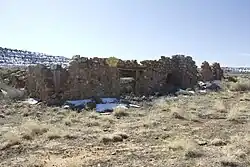 While on her lecture tour in Boise, Idaho, Ogden announced a revelation directing her to establish a religious colony dedicated to "the truth".[7] She returned to New Jersey with no idea of a location for the project, but was convinced it must be in a wilderness area far from city life. Ogden explained that she had received "a description and a mental picture of the place and knew it was on virgin soil, far removed from city life," as well as in the "intermountain country."[4] Through friends she learned of available land in San Juan County, Utah, and after visiting the area she made up her mind. She claimed that the location of their commune matched her vision.[4] A group of 21 disciples,[8] mostly from the Boise area, followed her to Dry Valley in southeastern Utah in September 1933.[6] Intending to start a collective farm, the group first tried to buy some irrigated ranch land on Indian Creek, but they could not pay the asking price. Ogden offered the owner membership in the colony and a guarantee of eternal life, but to no avail.[7] They settled on a tract of barren desert near Church Rock—the site, according to Ogden, of Christ's Second Coming—and began to build the Home of Truth.[8]