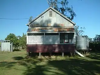 The Homebush Mission Hall was established by the Presbyterian Church on land donated by the Colonial Sugar Refining Company at Homebush. The building, which had been constructed of corrugated iron and timber stumps, supplied by the trustees, looked on to the mill road, which ran along the tramline to the combined road and tramline bridge over Sandy Creek.[1]