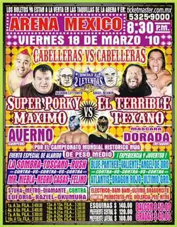 - ^ a b Ruiz Glez, Alex (February 24, 2011). "Arena México: Homenaje a Dos Leyendas 2011 (18 de Marzo) Brazo de Plata y Máximo vs Texano y Terrible por las cabelleras" (in Spanish). Super Luchas. Retrieved February 24, 2011.