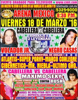 - ^ a b Dark Angelita (March 18, 2016). "CMLL "Homenaje a Dos Leyendas" – Cobertura y Resultados – 21/03/2016 – Máximo Sexy y Negro Casas, pelones". SuperLuchas (in Spanish). Retrieved March 19, 2016.